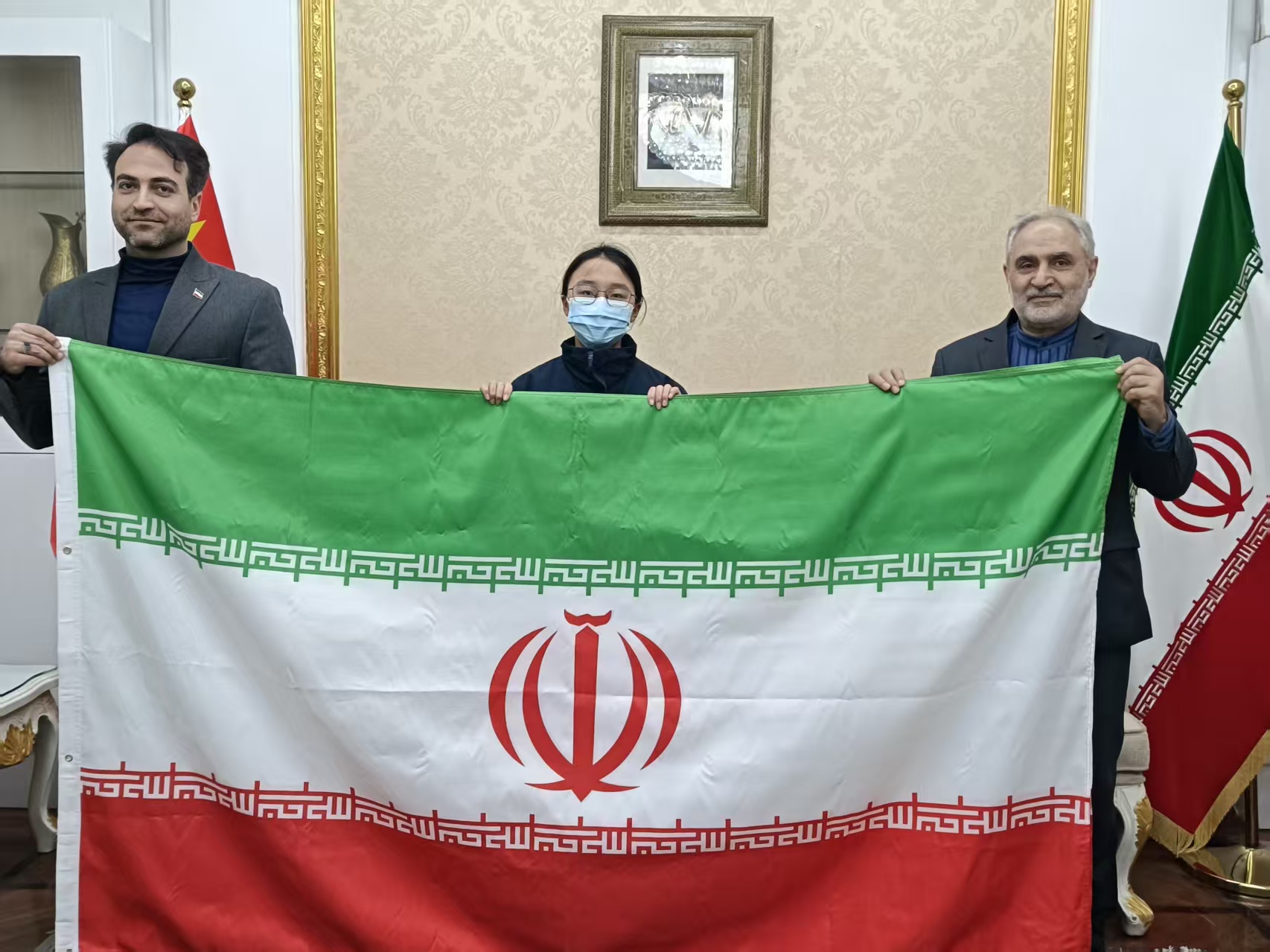 اهداء پرچم کشورمان به نمایندگی جمهوری اسلامی ایران در شانگهای توسط یک دانش آموز چینی
