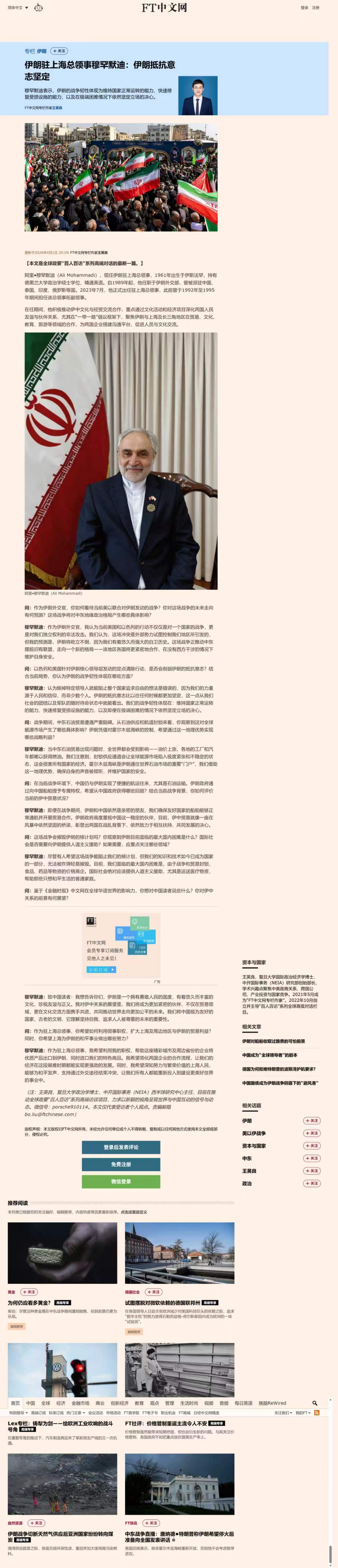 مصاحبه با خبرگزاری فایننشال تایمز چین