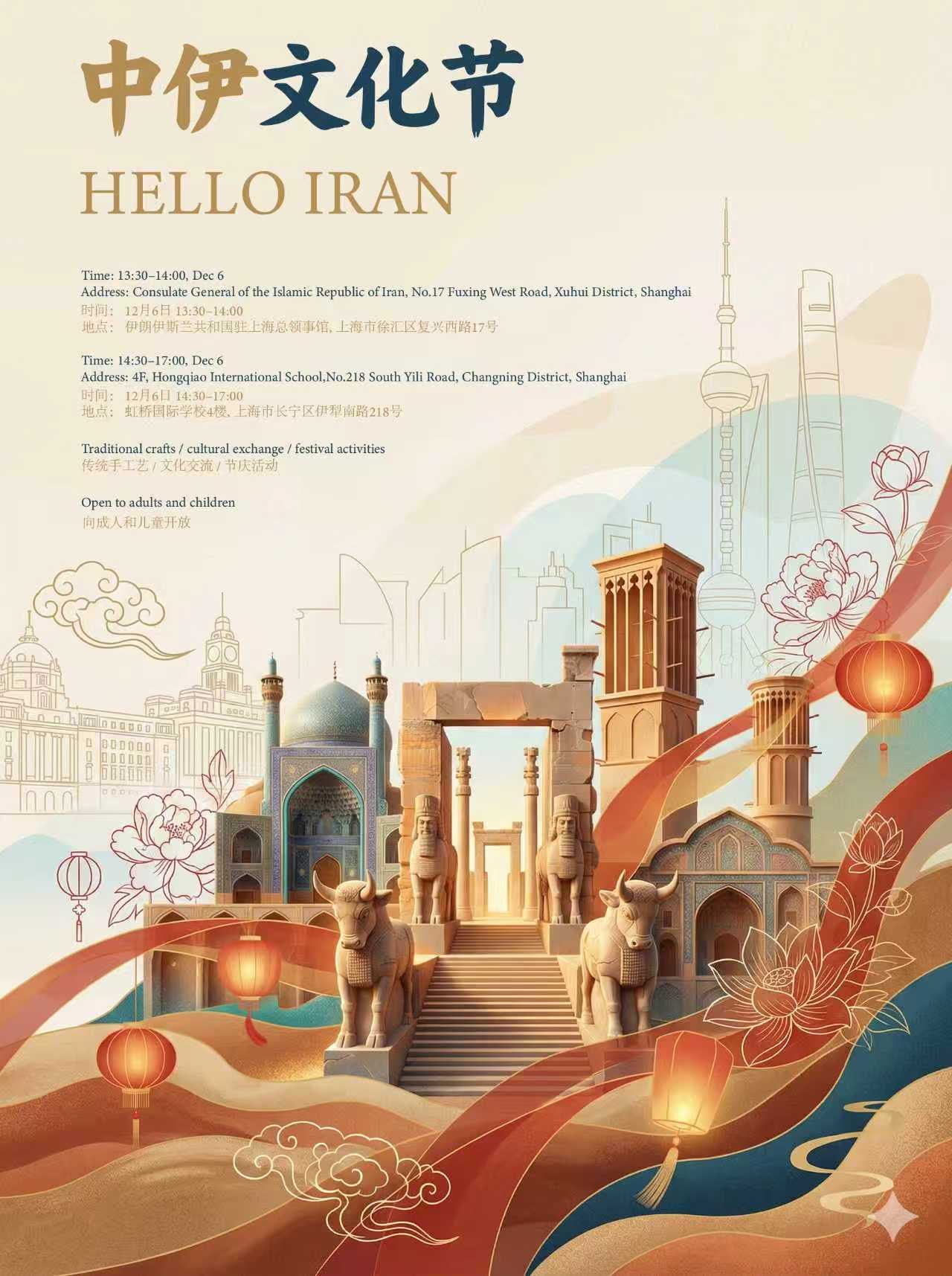 اطلاعیه برگزاری برنامه فرهنگی موسوم به HELLO IRAN با همکاری موسسه فرهنگی رنگین کمان شانگهای